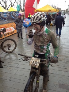 Stamattina non piove, c’è il sole e una forte bora. Sabato però ha piovuto tutto il giorno, infatti Annalisa ieri è stata a provare il percorso e a fine giornata, questa era la condizione della sua bici.